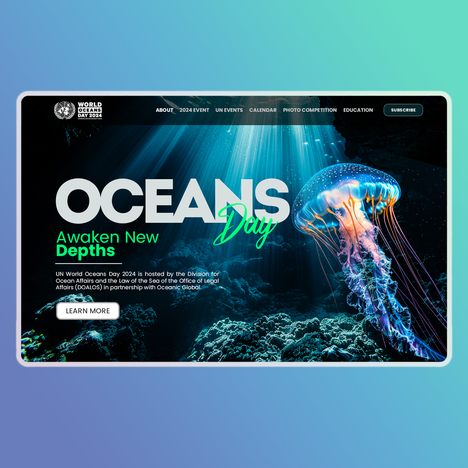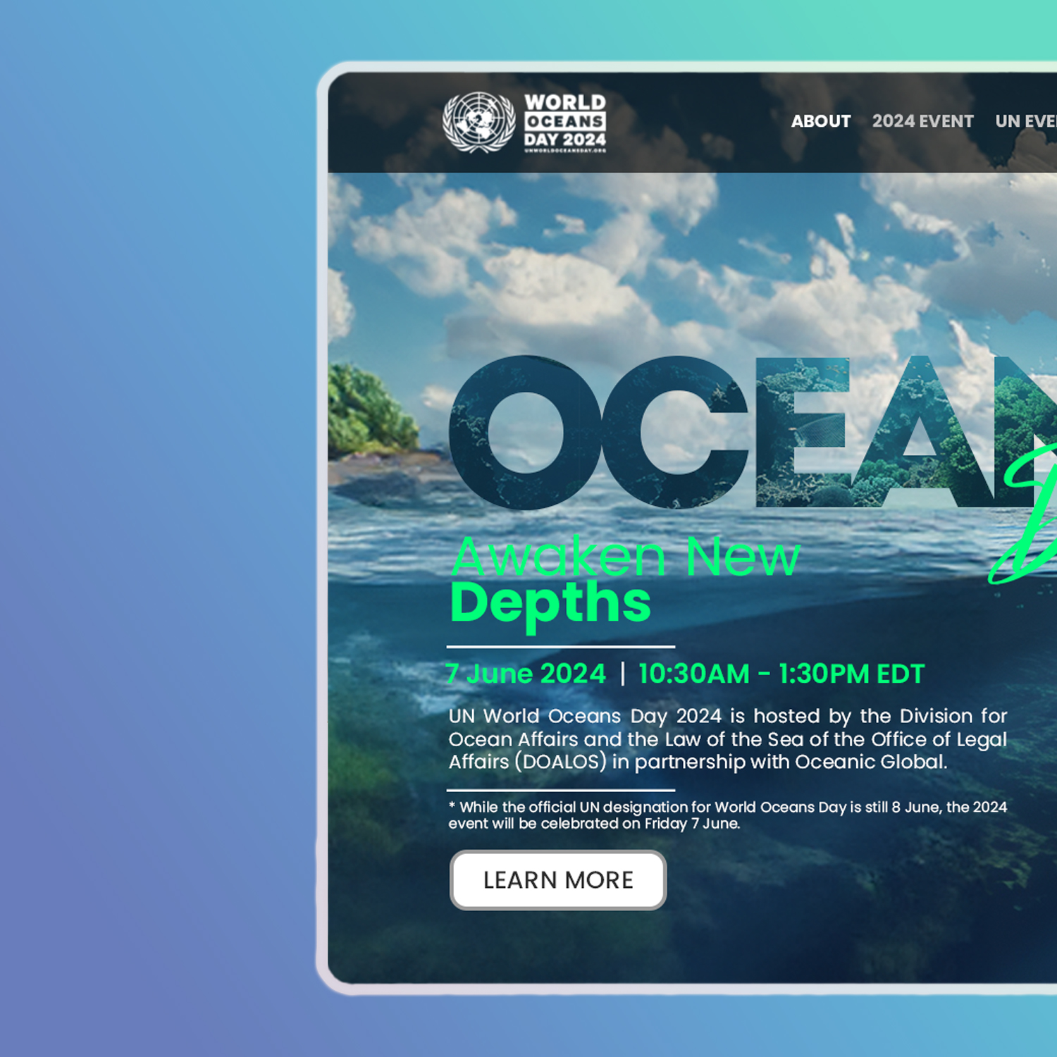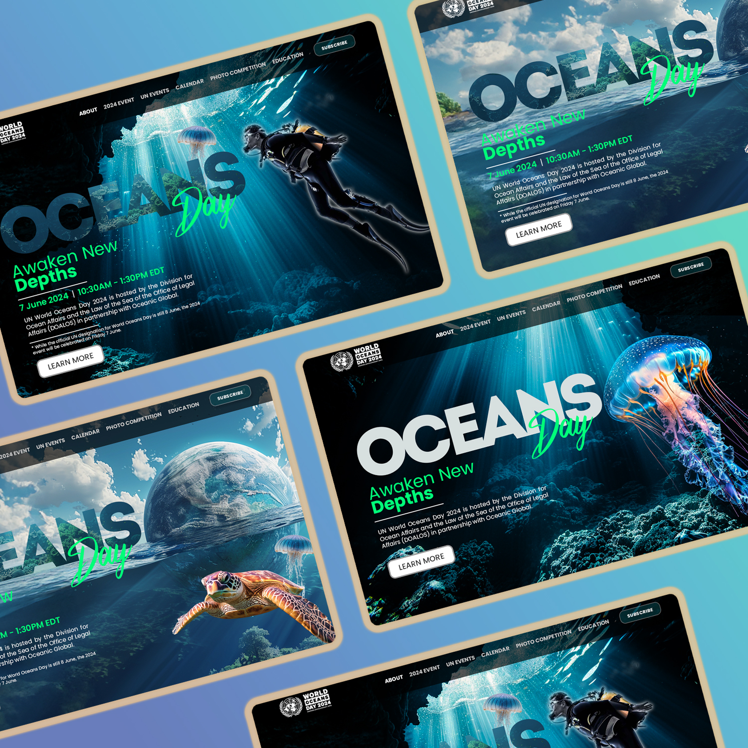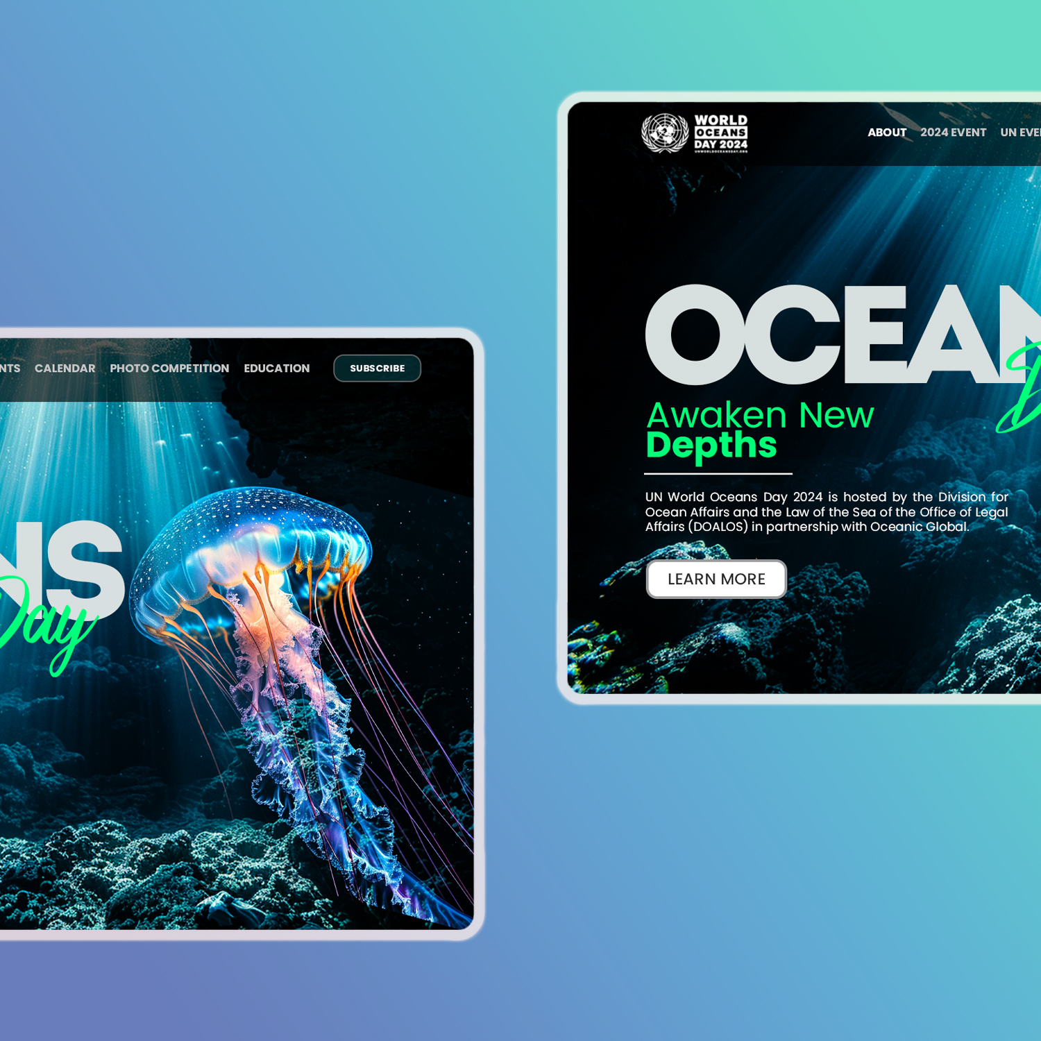 Imali smo čast dizajnirati posebnu landing stranicu za Svjetski dan okeana. Ovaj interaktivni centar služi kao svjetionik informacija, angažmana i akcije, sve s ciljem očuvanja okeana.